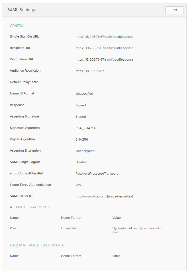 - If you require the ACS URL, this will be: https://{ip-address-of-your-hyperglance}/saml/postResponse